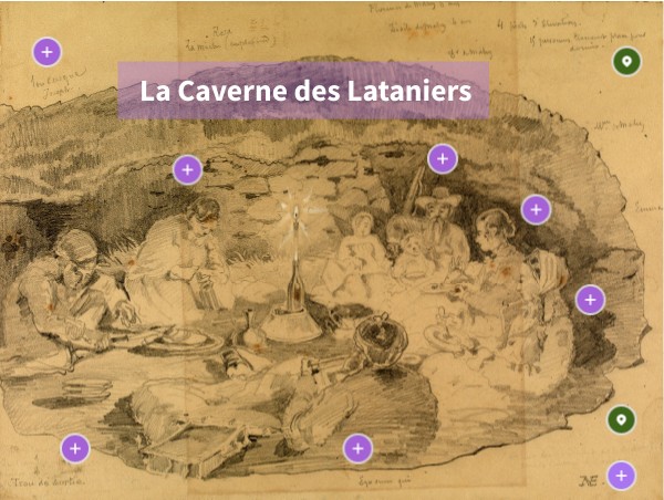La marche est fatigante malgré les distractions que présentent une nature inconnue et des points de vue nouveaux [...] Après avoir contourné la base du Piton de Sable qui domine l'encaissement de la Rivière des Remparts, nous arrivons à l'entrée dela caverne Latanier. C'est là que nous passerons la nuit. Il est midi. Nous avons marché cinq heures,toujours en montant. La caverne est située dans la plaine de Cilaos*. Je ne sais pourquoi on l'appelle caverne Latanier : à cette altitude (deux mille mètres) où la température est froide, aucun palmier ne pousse, le latanier moins que tout autre, car il a besoin des terres chaudes du bord de la mer.