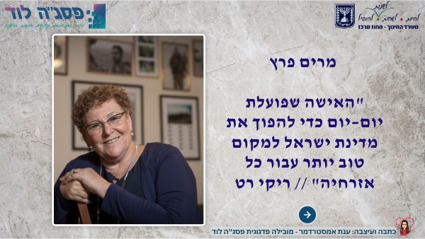 מרים פרץ "האישה שפועלת יום–יום כדי להפוך את מדינת ישראל למקום טוב יותר עבור כל אזרחיה" // ריקי רט