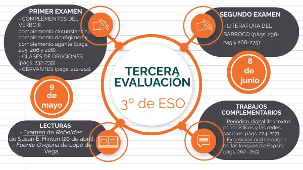- Examen de Rebeldes de Susan E. Hinton (20 de abril). - Fuente Ovejuna de Lope de Vega.