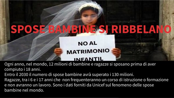 Ogni anno, nel mondo, 12 milioni di bambine e ragazze si sposano prima di aver compiuto i 18 anni. Entro il 2030 il numero di spose bambine avrà superato i 130 milioni. Ragazze, tra i 6 e i 17 anni che non frequenteranno un corso di istruzione o formazione e non avranno un lavoro. Sono i dati forniti da Unicef sul fenomeno delle spose bambine nel mondo.
