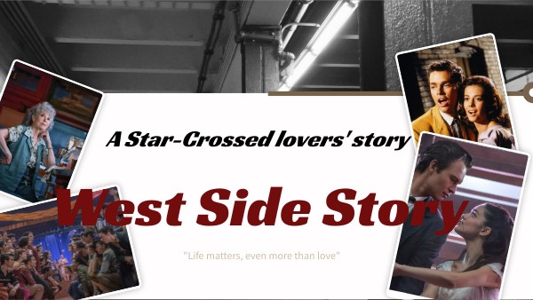 The love story is a story about the challenge of differences in relationships. The Sharks and the Jets are completley different clans through their culture, roots, environement or ideals. Indeed, in one hand, the Sharks are Puerto-Ricans, they speak spanish, the men don't feel welcome in America because of racism (song America). On an other hand the Jets are white people, the police has more affinities for them because of their skin color for example. They belive they are true american as their descent are settlers. More...
