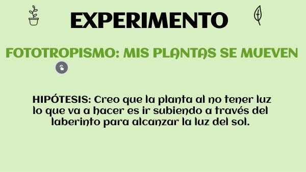 HIPÓTESIS: Creo que la planta al no tener luz lo que va a hacer es ir subiendo a través del laberinto para alcanzar la luz del sol.