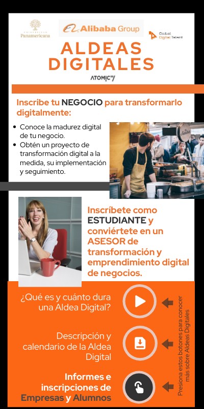 Inscríbete como ESTUDIANTE y conviértete en un ASESOR de transformación y emprendimiento digital de negocios.