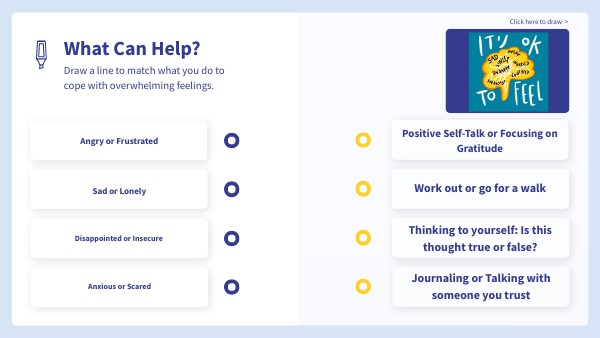 Draw a line to match what you do to cope with overwhelming feelings.