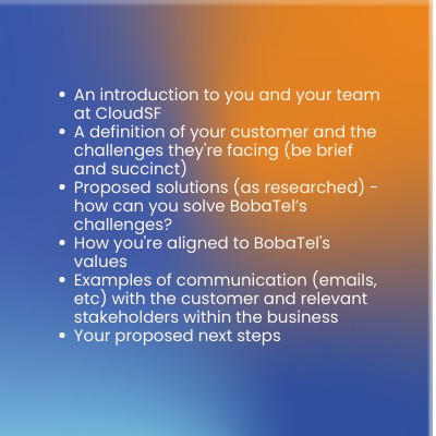- How you're aligned to BobaTel's values