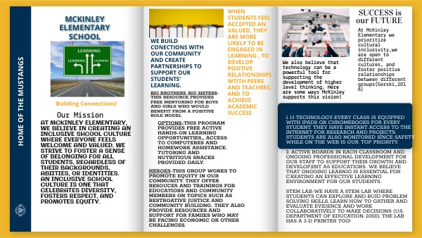 At McKinley Elementary we prioritize cultural inclusivity,we are open to different cultures, and foster positive relationships between different groups.