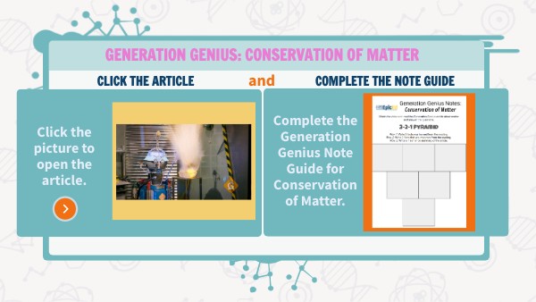 Complete the Generation Genius Note Guide for Conservation of Matter.
