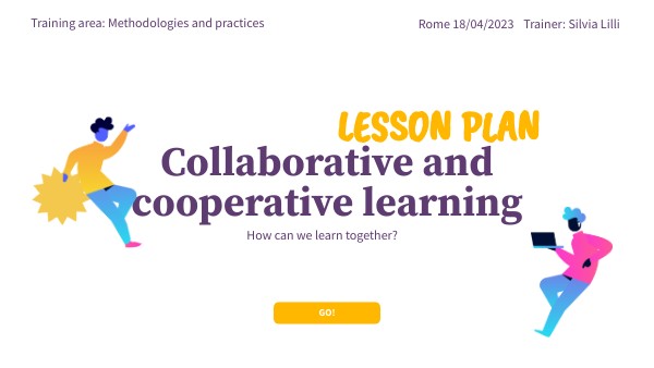 In this presentation I will show how I would plan my lesson about the topic: Collaborative and cooperative learning. Audience target: teachers from various European schools attending an Erasmus+ teacher training course.