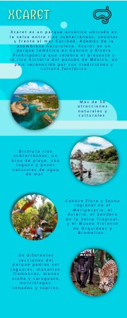 Xcaret es un parque acuático ubicado en la selva entre ríos subterráneos, cenotes y frente al mar Caribed. Además de la asombrosa naturaleza, Xcaret es un parque temático en Cancún y Rivera Prehispánica que celebra el presente y la rica historia del pasado de México, un país reconocido por sus tradiciones y cultura folclórica