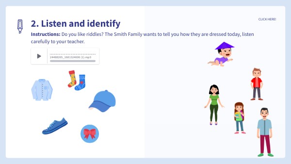 Instructions: Do you like riddles? The Smith Family wants to tell you how they are dressed today, listen carefully to your teacher.