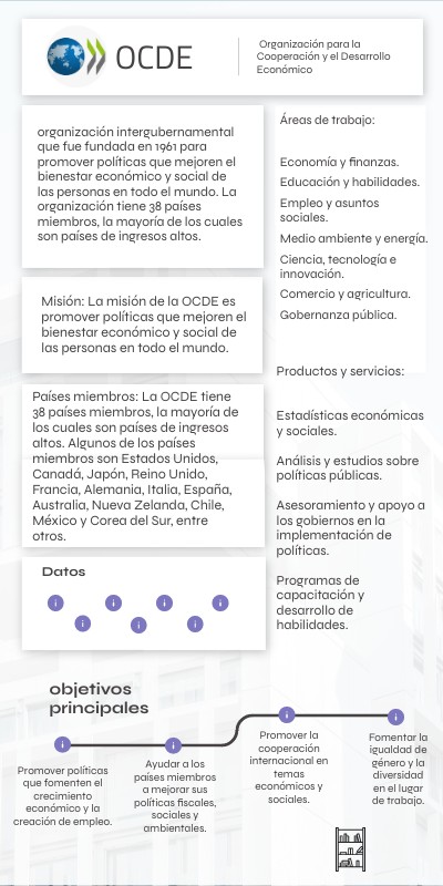 organización intergubernamental que fue fundada en 1961 para promover políticas que mejoren el bienestar económico y social de las personas en todo el mundo. La organización tiene 38 países miembros, la mayoría de los cuales son países de ingresos altos.