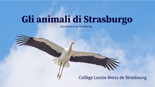 Bonjour à tous. Vous êtes sur le point de découvrir notre projet Gli animali di Strasburgo. Ce projet a été mené par les élèves italianisants du collège Louise Weiss de Strasbourg tout au long de l'année scolaire 2022-23. Nous avons été aidés par notre professeur d'italien Mme Pezzuolo et par l'assistante d'italien Mme Nestola. Nos correspondants de l'Istituto Luigi Settembrini de Rome ont également travaillé sur ce sujet en s'intéressant aux animaux de leur ville. Vous est-il déjà arrivé de croiser la route d’un animal dans votre ville? Nous avons décidé de nous intéresser aux animaux autour de nous, nonn seulement aux animaux en chair et en os mais aussi aux œuvres d’art qui représentent des animaux. Et dans les rues de Strasbourg, on peut en admirer beaucoup.