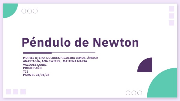 Pudimos confirmar que: -La perduracion de la energía es por un determinado tiempo y esta no va aumentar a lo largo de este periodo salvo que sea agregada desde una fuente externa. -Esta va a variar segun el peso de las bolas. -Esta va disminuyendo con el tiempo debido a la perdida de energía. ¿Quien invento el pendulo de Newton? Fue ideado por el físico del siglo XVII Edme Mariotte, pues quien le ha dado nombre, sir Isaac Newton, menciona en sus Principia los experimentos realizados por el físico francés sobre el choque de bolas suspendidas como péndulos.