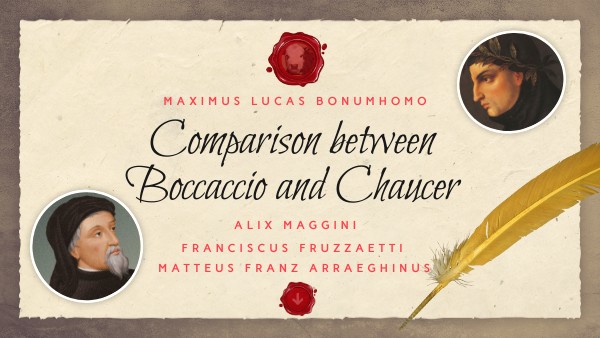 The reason to make a presentation about these two medieval auteurs and, most of all, about the comparison between them is given by both their relevance in the origin of modern prose and the influence that one had in the works and the poetic of the other. To understand the way in which our narrative works today, we must trace the roots of it. Therefore, Boccaccio and Chaucer ought to be studied.
