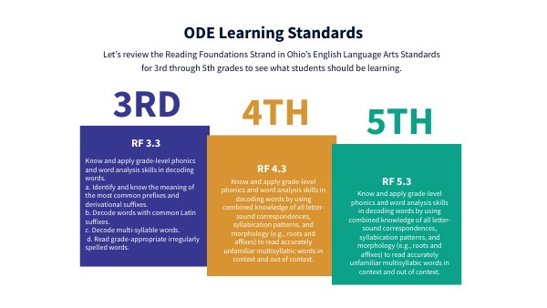 Let’s review the Reading Foundations Strand in Ohio’s English Language Arts Standards for 3rd through 5th grades to see what students should be learning.