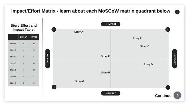 Impact/Effort Matrix - learn about each MoSCoW matrix quadrant below