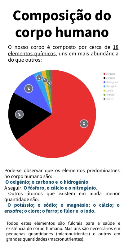 O nosso corpo é composto por cerca de 18 elementos químicos, uns em mais abundância do que outros:
