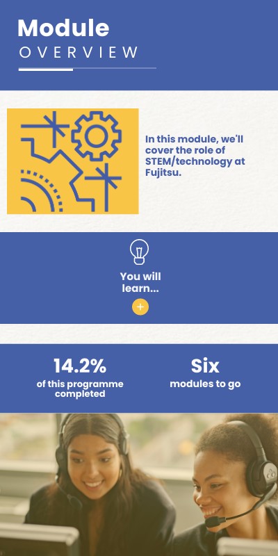 In this module, we'll cover the role of STEM/technology at Fujitsu.