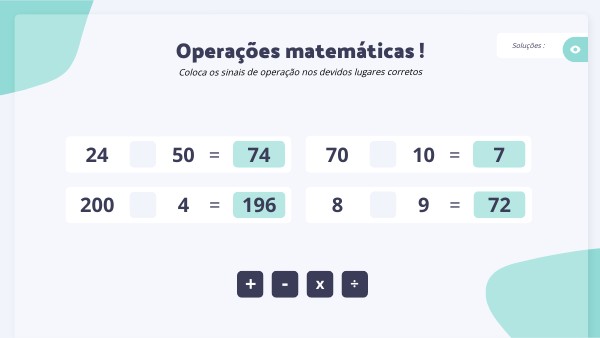Coloca os sinais de operação e os algarismos nos devidos lugares corretos