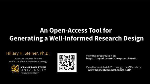View this presentation at: https://tinyurl.com/PODHopscotch4SoTL View Hopscotch 4-SoTL through the QR code or: www.hopscotchmodel.com/4-sotl/
