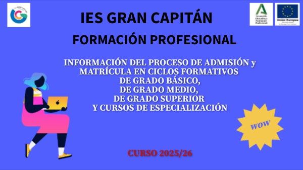 INFORMACIÓN DEL PROCESO DE ADMISIÓN y MATRÍCULA EN CICLOS FORMATIVOS DE GRADO BÁSICO, DE GRADO MEDIO, DE GRADO SUPERIOR Y CURSOS DE ESPECIALIZACIÓN CURSO 2025/26