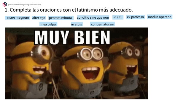 1. Completa las oraciones con el latinismo más adecuado.