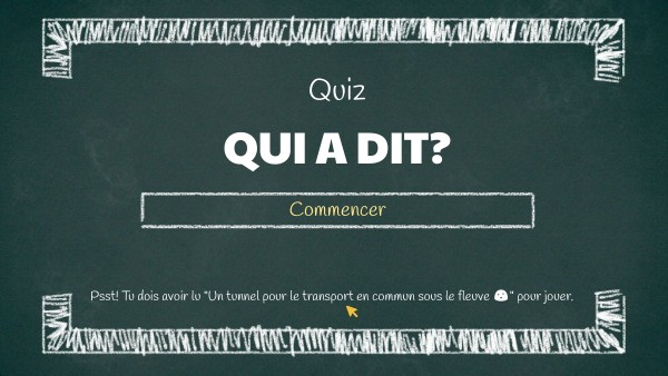 Psst! Tu dois avoir lu "Un tunnel pour le transport en commun sous le fleuve đź" pour jouer.