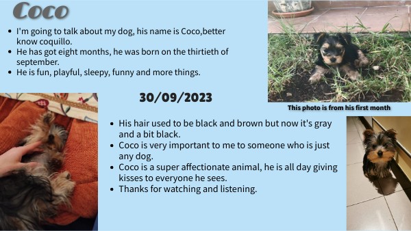 - I'm going to talk about my dog, his name is Coco,better know coquillo.