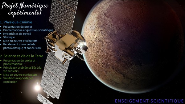 - Objectif : Répondre aux besoins énergétiques d'un équipage sur Mars à l'aide de panneaux solaires nécessaires au fonctionnement de leur mission.
