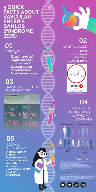 - Ehlers-Danlos Syndrome (EDS), Vascular Type. Biochemistry @ Muhlenberg. https://bcm441.kericolabroy.bergbuilds.domains/diseases/diseases-a-through-g/ehlers-danlos-syndrome/.