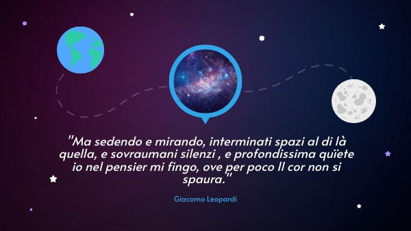 "Ma sedendo e mirando, interminati spazi al di là quella, e sovraumani silenzi , e profondissima quïete io nel pensier mi fingo, ove per poco Il cor non si spaura."