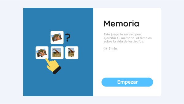 Este juego te servira para ejercitar tu memoria, el tema es sobre la vida de las jirafas.