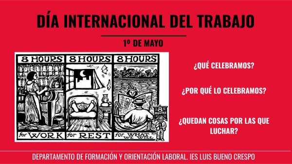 Se celebra el Primero de Mayo para conmemorar la huelga de 1886 en Chicago en que se pedía la reducción de la jornada de trabajo a 8 horas. Si quieres saber más sobre la revuelta de Haymarket y los mártires de Chicago pulsa el