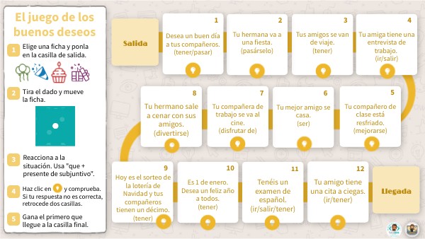Actividad de español para extranjeros. Nivel B1. Práctica del modo subjuntivo con matrices de deseo.
