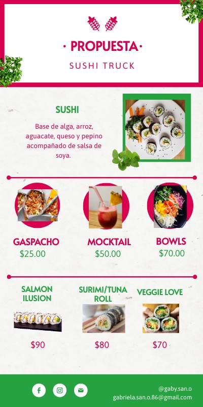 Base de alga, arroz, aguacate, queso y pepino acompañado de salsa de soya.