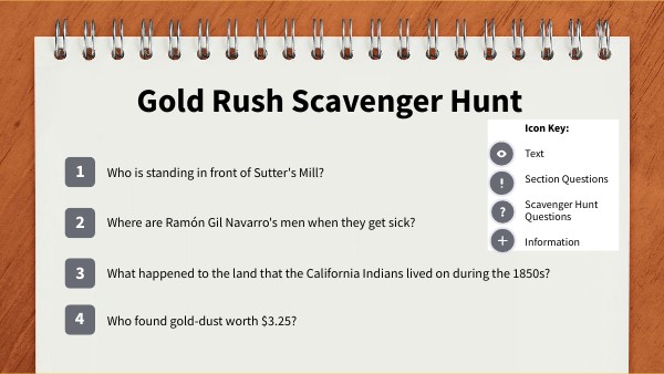 Icon Key: Text Section Questions Scavenger Hunt Questions Information