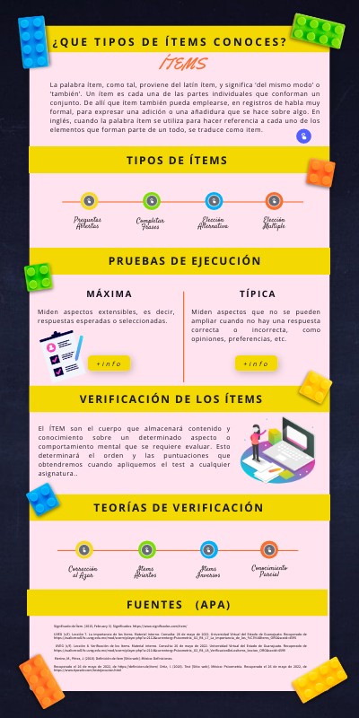 Significado de Ítem. (2015, February 3). Significados. https://www.significados.com/item/ UVEG (s/f). Lección 7. La importancia de los ítems. Material interno. Consulta: 26 de mayo de 2022. Universidad Virtual del Estado de Guanajuato. Recuperado de https://avalicmod19c.uveg.edu.mx/mod/scorm/player.php?a=2112¤torg=Psicometria_U2_R4_L7_La_importancia_de_los_%C3%ADtems_ORG&scoid=4595 UVEG (s/f). Lección 8. Verificación de los ítems. Material interno. Consulta: 26 de mayo de 2022. Universidad Virtual del Estado de Guanajuato. Recuperado de https://avalicmod19c.uveg.edu.mx/mod/scorm/player.php?a=2114¤torg=Psicometria_U2_R4_L8_VerificacionDeLosItems_leccion_ORG&scoid=4599 Merino, M., Pérez, J. (2018). Definición de ítem [Sitio web]. México: Definiciones. Recuperado el 26 de mayo de 2022, de https://definicion.de/item/ Ortiz, I. (2018). Test [Sitio web]. México: Psicometría. Recuperado el 26 de mayo de 2022, de https://www.tiposde.com/testejecucion.html