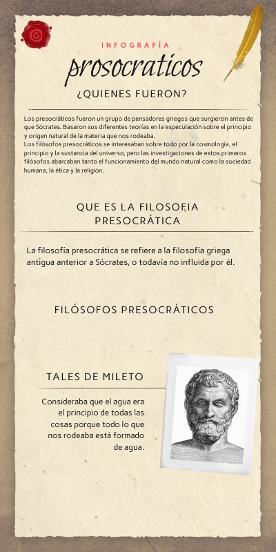 Los presocráticos fueron un grupo de pensadores griegos que surgieron antes de que Sócrates. Basaron sus diferentes teorías en la especulación sobre el principio y origen natural de la materia que nos rodeaba. Los filósofos presocráticos se interesaban sobre todo por la cosmología, el principio y la sustancia del universo, pero las investigaciones de estos primeros filósofos abarcaban tanto el funcionamiento del mundo natural como la sociedad humana, la ética y la religión.