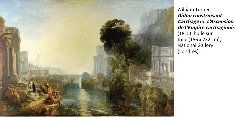 William Turner, Didon construisant Carthage ou L’Ascension de l’Empire carthaginois (1815), huile sur toile (156 x 232 cm), National Gallery (Londres).