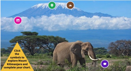 Click the symbols to explore Mount Kilimanjaro and complete your chart.