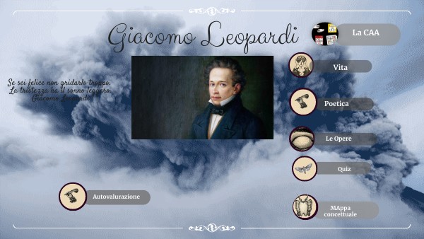 Leopardi nasce a Recanati nelle marche nel 1798, in una famiglia nobile.La sua vita venne segnata già durante l’infanzia da una profonda infelicità: il padre, il conte Monaldo, era un uomo colto ma conservatore e pieno di pregiudizi; la madre, Adelaide Antici, era severa e fredda. Privo del calore degli affetti, Giacomo cercò sollievo alla solitudine nello studio. Affidato dapprima a un precettore, ben presto superò il suo maestro e, sfruttando la grande biblioteca paterna, si dedicò da autodidatta a “sette anni di studio” che gli fornirono una cultura eccezionale ma minarono per sempre la sua salute fisica. Negli stessi anni compose e pubblicò saggi di carattere scientifico, storico e filologico; esegui traduzioni di opere latine e greghe; scrisse varie poesie e tre tragedie, in uno stile classicheggiante.