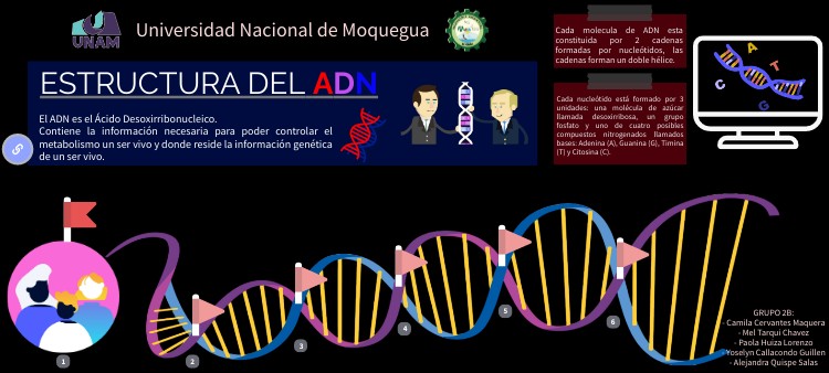 Cada molecula de ADN esta constituida por 2 cadenas formadas por nucleótidos, las cadenas forman un doble hélice.