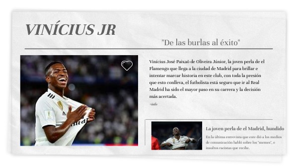 Vinícius José Paixaõ de Oliveira Júnior, la joven perla de el Flamengo que llega a la ciudad de Madrid para brillar e intentar marcar historia en este club, con toda la presión que esto conlleva, el futbolista está seguro que ir al Real Madrid ha sido el mayor paso en su carrera y la decisión más acertada.
