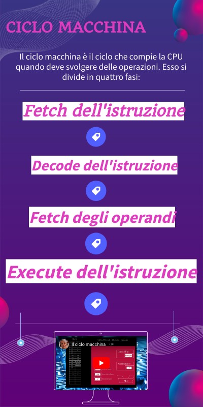Il ciclo macchina è il ciclo che compie la CPU quando deve svolgere delle operazioni. Esso si divide in quattro fasi: