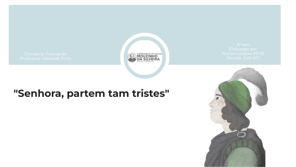 Analisando o poema "Senhora, partem tão tristes" , podemos identificar o seguinte: