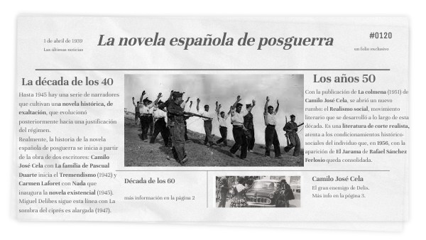 Con la publicación de La colmena (1951) de Camilo José Cela, se abrió un nuevo rumbo: el Realismo social, movimiento literario que se desarrolló a lo largo de esta década. Es una literatura de corte realista, atenta a los condicionamientos histórico-sociales del individuo que, en 1956, con la aparición de El Jarama de Rafael Sánchez Ferlosio queda consolidada.