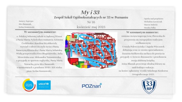 minione święta inspirują Lenę Zbrowską do przyjrzenia się europejskim tradycjom wielkanocnym; Urszula Polewczyńska i Jagoda Wieczorek debiutują wraz ze swoim opowiadaniem; Zuzanna Kulikowska zachęca do przeżycia przygody w świecie dinozaurów i przedstawia swoją ulubioną książkę; Arina Błaszak prezentuje idealną lekturę na nadchodzące wakacje; na koniec ogłaszamy wyniki Szkolnego Konkursu Ortograficznego 2023.