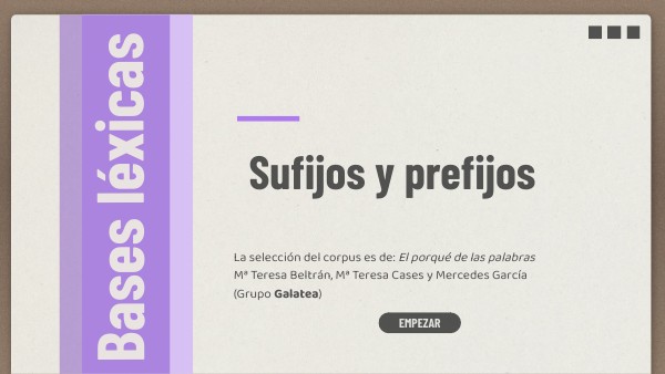 La selección del corpus es de: El porqué de las palabras Mª Teresa Beltrán, Mª Teresa Cases y Mercedes García (Grupo Galatea)