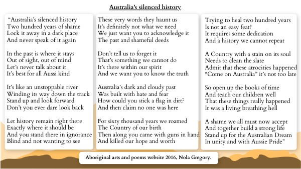 Aboriginal arts and poems website 2016, Nola Gregory.