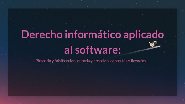 El derecho informático aplicado al software es una rama del derecho que se ocupa de los aspectos legales relacionados con la creación, distribución, uso y protección del software y otros productos informáticos.